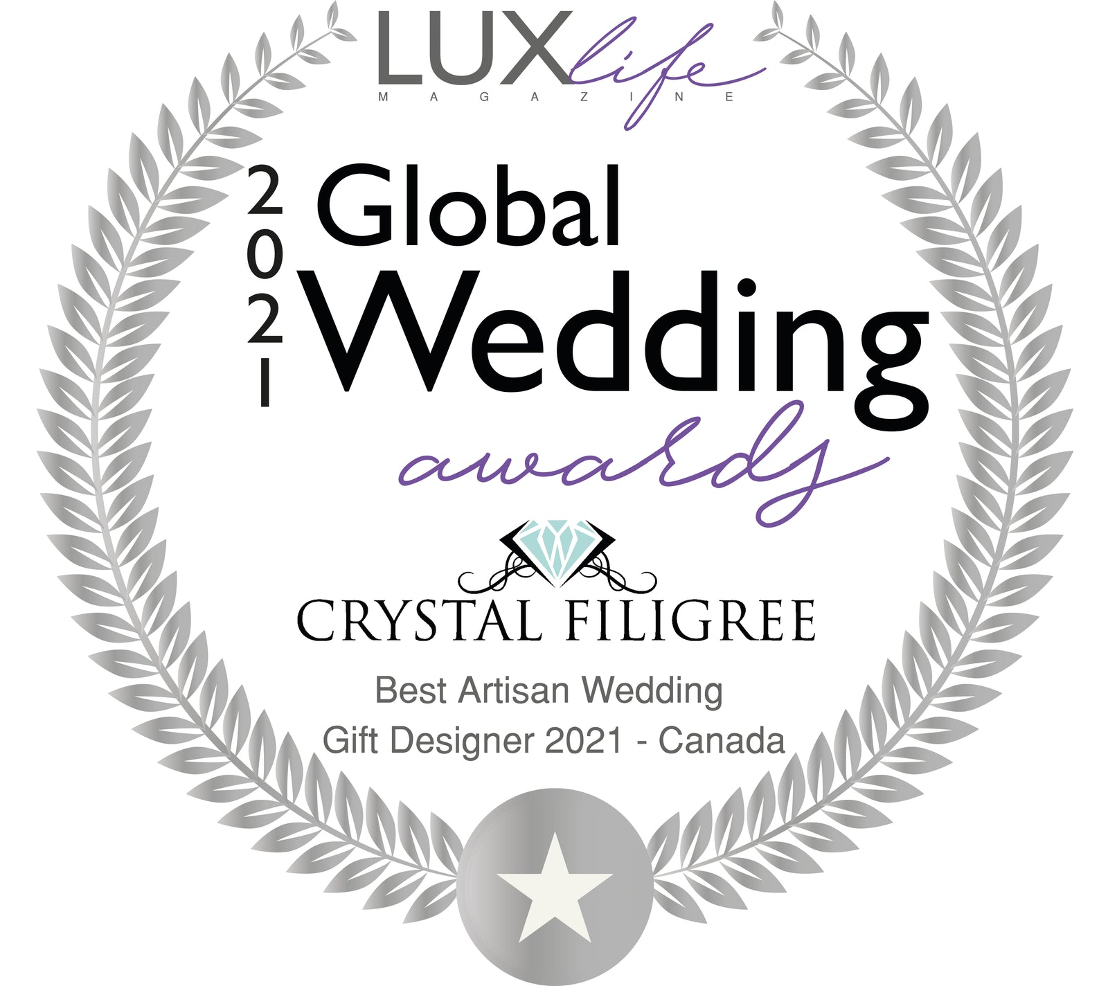 I am pleased to announce that Crystal Filigree has been awarded the title of Best Artisan Wedding Gift Designer 2021-Canada by Lux Life Magazine for their 2021 Global Wedding awards. Thank you so much!